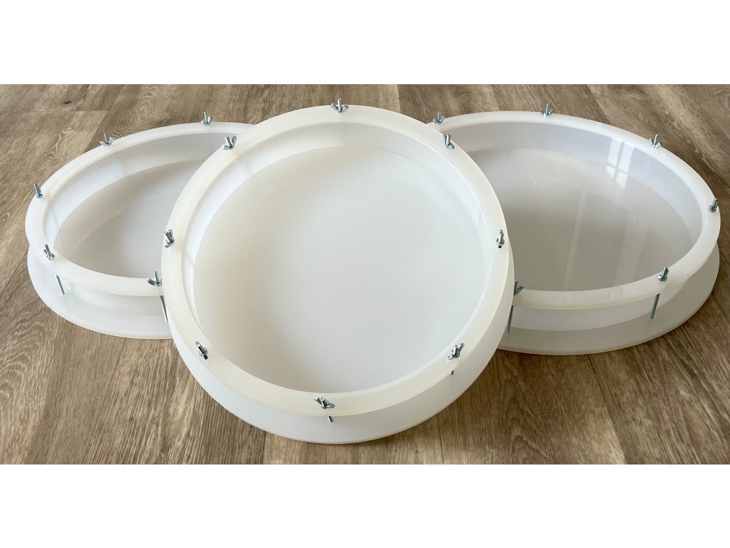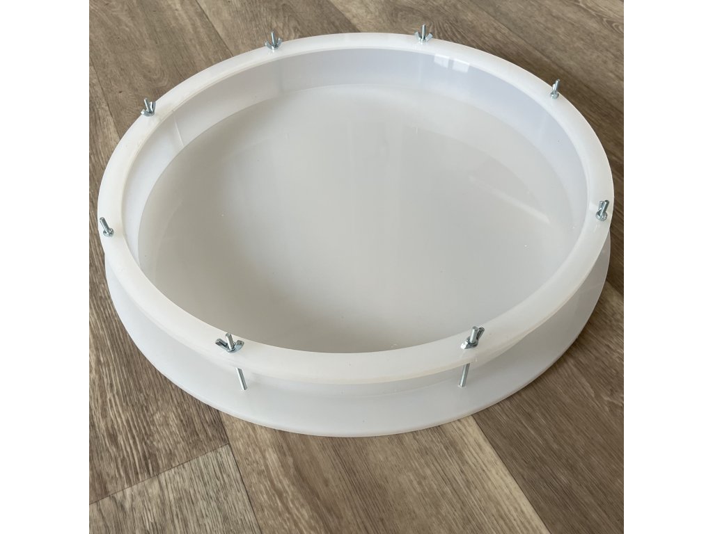 Polypropylene mould for the repeated production of epoxy castings in combination with wood and other materials for clocks or tables. Different size variants. Didn't choose one of the available options? Email us your dimensions here and we will get back to you.
